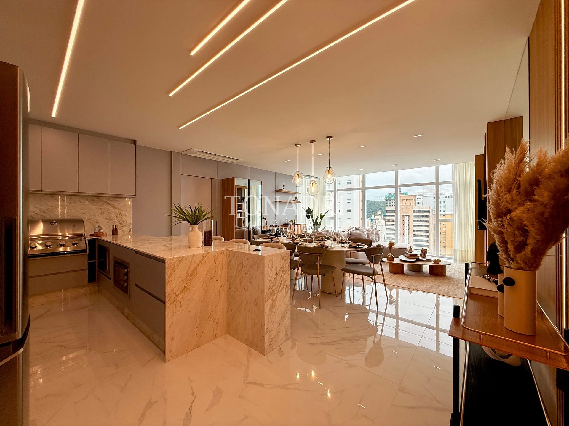 Apartamento mobiliado e decorado à Venda no Centro Sul, Balneário Camboriú, a 400m do mar: Horizon Residence (FG) recém-entregue na Rua 2050, com 126 m² privativos, 4 dormitórios (2 suítes) e 3 vagas.